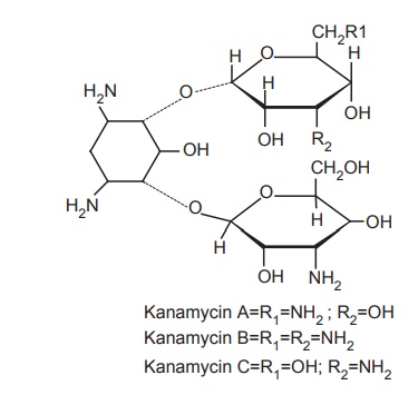 consists of three related structures, that is, Kanamycin A, B, and C. The kanamycins do not possess D-ribose