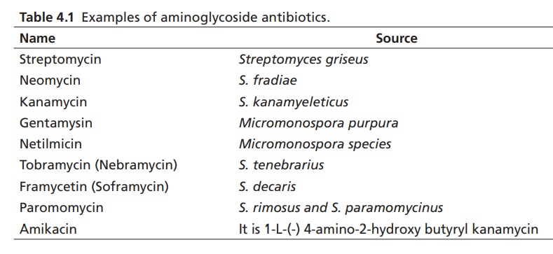 a. Streptomycin and dihydrostreptomycin b. Gentamycins c. Neomycin d. Kanamycin e. Amikacin f. Tobramycin g. Netilmicin (1-N-ethylsisomicin)
