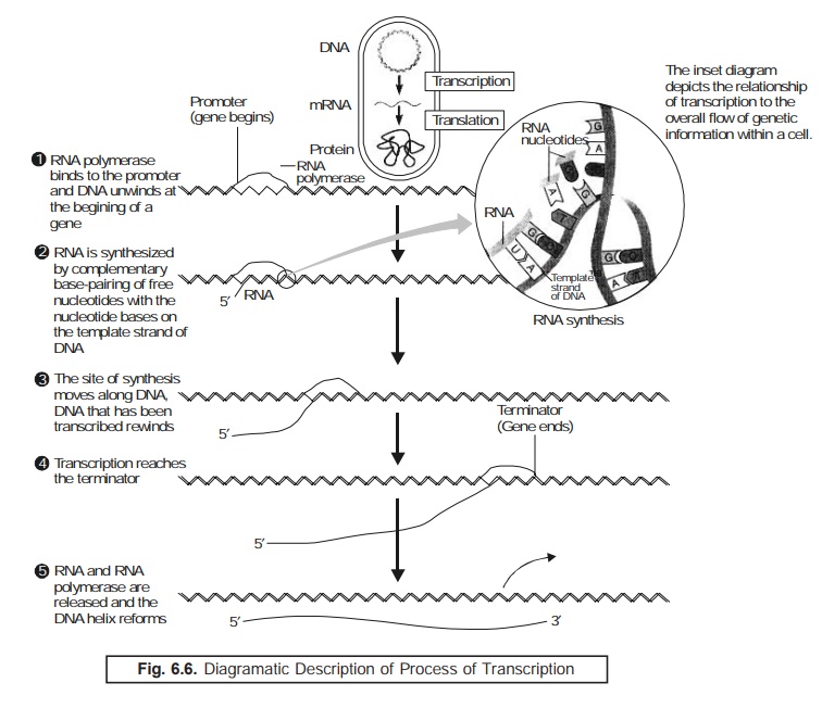RNA (mRNA) gets duly synthesized by the critical usage of a ‘specific gene’ i.e., a vital segment of the cell’s DNA–as a template, as illustrated beautifully in Figure : 6.6. Thus, one may