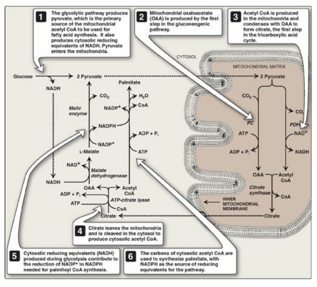 novo fatty acid synthesis is the transfer of acetate units from mitochondrial
