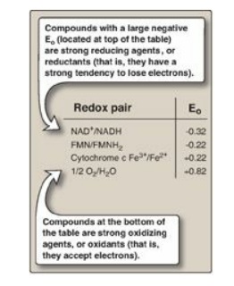 reduction potentials (Eo) of some reactions. NAD(H) = nicotinamide adenine