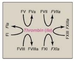activation of thrombin. Active thrombin then activates factors of the common