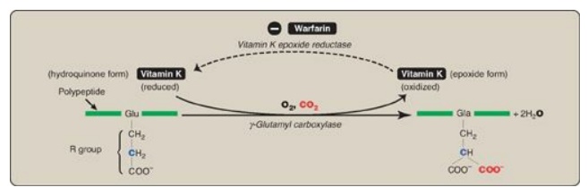 the γ-carboxylation reaction. Thus, warfarin is an anticoagulant that inhibits