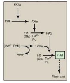 intrinsic pathway, and the common pathway. Production of FXa by the extrinsic
