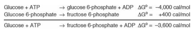 As long as the sum of the ∆Gs of the individual reactions is negative, the
