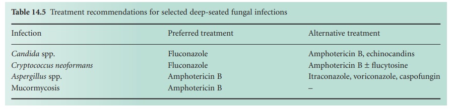 neoformans), yeast-like fungi (Candida spp.) or the filamentous fungi (Aspergillus spp). These produce a variety of syndromes for which different antifungal agents are indicated (Table 14.5).