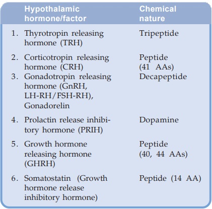 inhibitory hormones which control the secretion of anterior pituitary hormones.