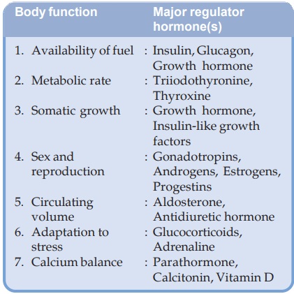 of intense biological activity that is produced by specific cells in the body and is transported through circulation to act on its target cells.