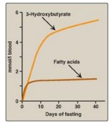 Figure 24.13 Concentrations of fatty acids and 3-hydroxybutyrate in the blood during fasting. [Note: 3-Hydroxybutyrate is made from the reduction of acetoacetate.]