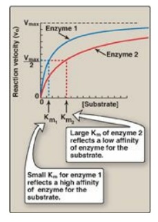 substrate is needed to half-saturate the enzyme—that is, to reach a velocity