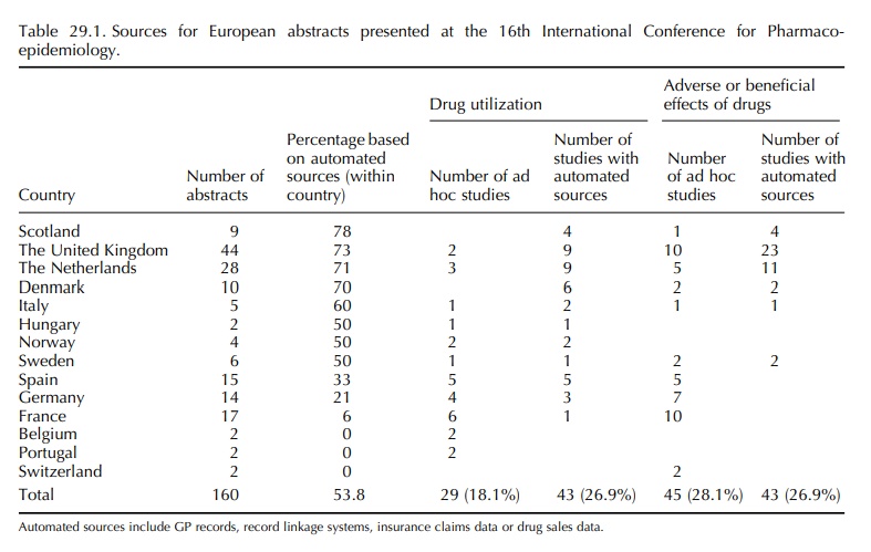 practitioner (GP), pharmacy or insurance data (Table 29.1). Little has changed