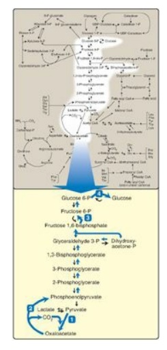 metabolism. The numbered reactions are unique to gluconeogenesis. (See Figure