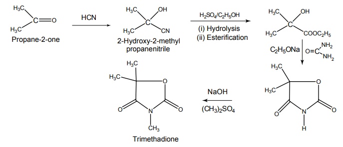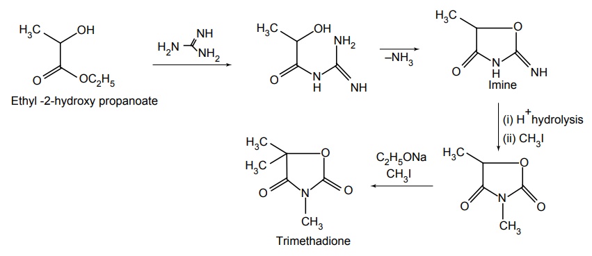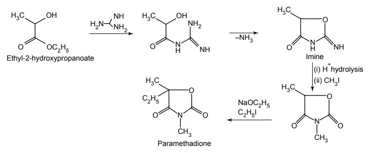 Anticonvulsants - Oxazolidinediones - Synthesis and Drug Profile - a. Trimethadione (Tridione) b. Paramethadione (Paradione) - Structure, Properties, uses, Synthesis, Assay, Storage, Dosage forms, Dose | Synthesis and Drug Profile