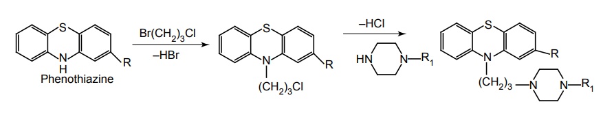 Properties and uses: It is a white or almost white crystalline powder, freely soluble in ethanol and well soluble in water. The drug has significant sedative and hypotensive properties, possibly reflecting central and peripheral α -noradrenergic blocking activity and also effects the peripheral anticholinergic activity, used as dopamine receptor antagonist and neuroleptic.