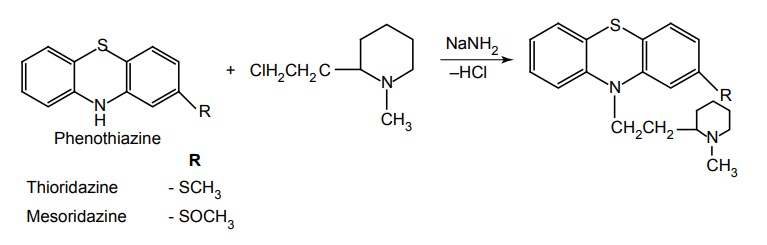 Properties and uses: It is a white or almost white crystalline powder, slightly hygroscopic in nature. It is well soluble in water, alcohol, and methylene chloride. It has low clinical potency, medium extrapyramidal toxicity, high sedative effect, and high hypotensive action. It is used as dopamine receptor antagonist and neuroleptic.