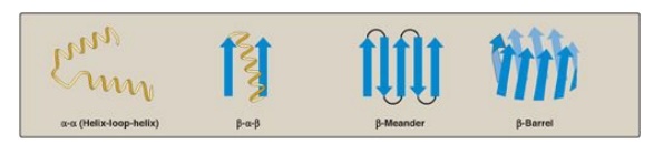 β-sheets, and coils), producing specific geometric patterns or motifs. These