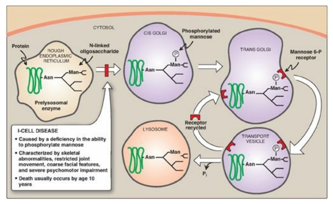 vesicles and sent to the lysosomes. I-cell disease is a rare lysosomal storage